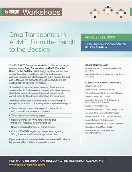 The workshop is fast approaching, and we have amazing speakers lined up. See all the detail below, with additional information at www.aaps.org/transporters.