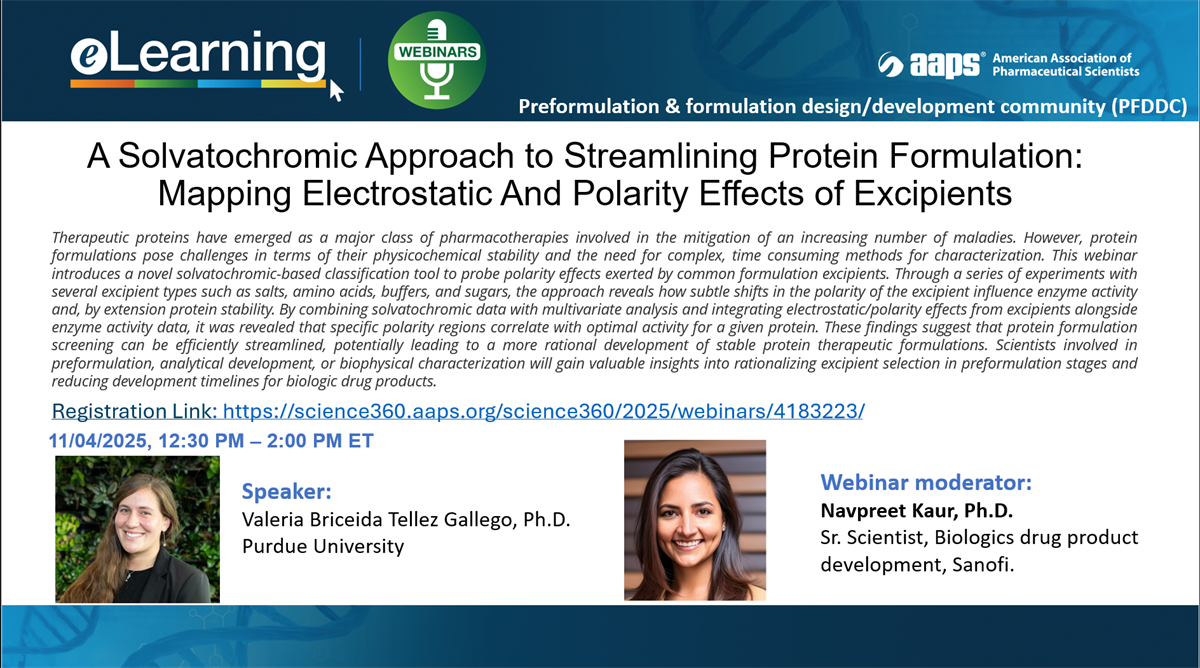 Join us for our upcoming webinar: A Solvatochromic Approach to Streamlining Protein Formulation: Mapping Electrostatic and Polarity Effects of Excipients by Dr. Valeria Briceida Tellez Gallego.