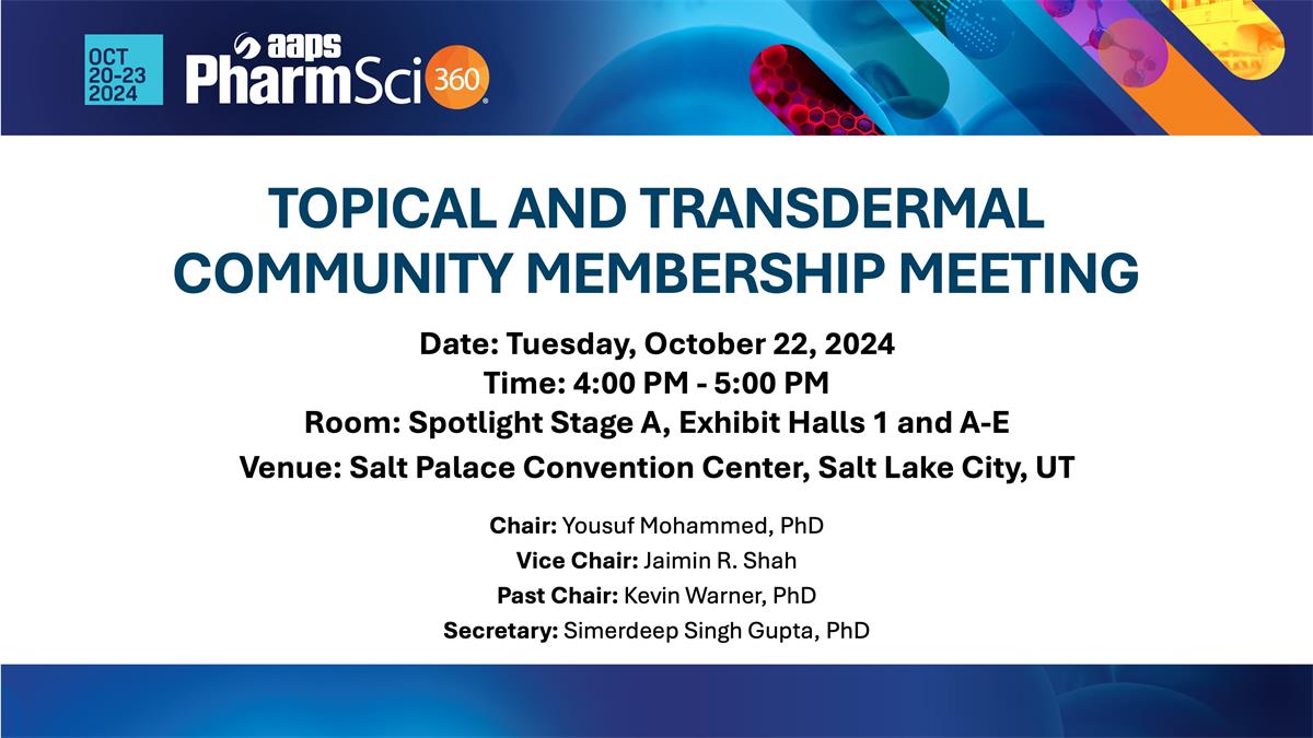 ๐จJoin us at the 2024 AAPS Topical and Transdermal Community Membership Meeting during PharmSci 360! ๐จ