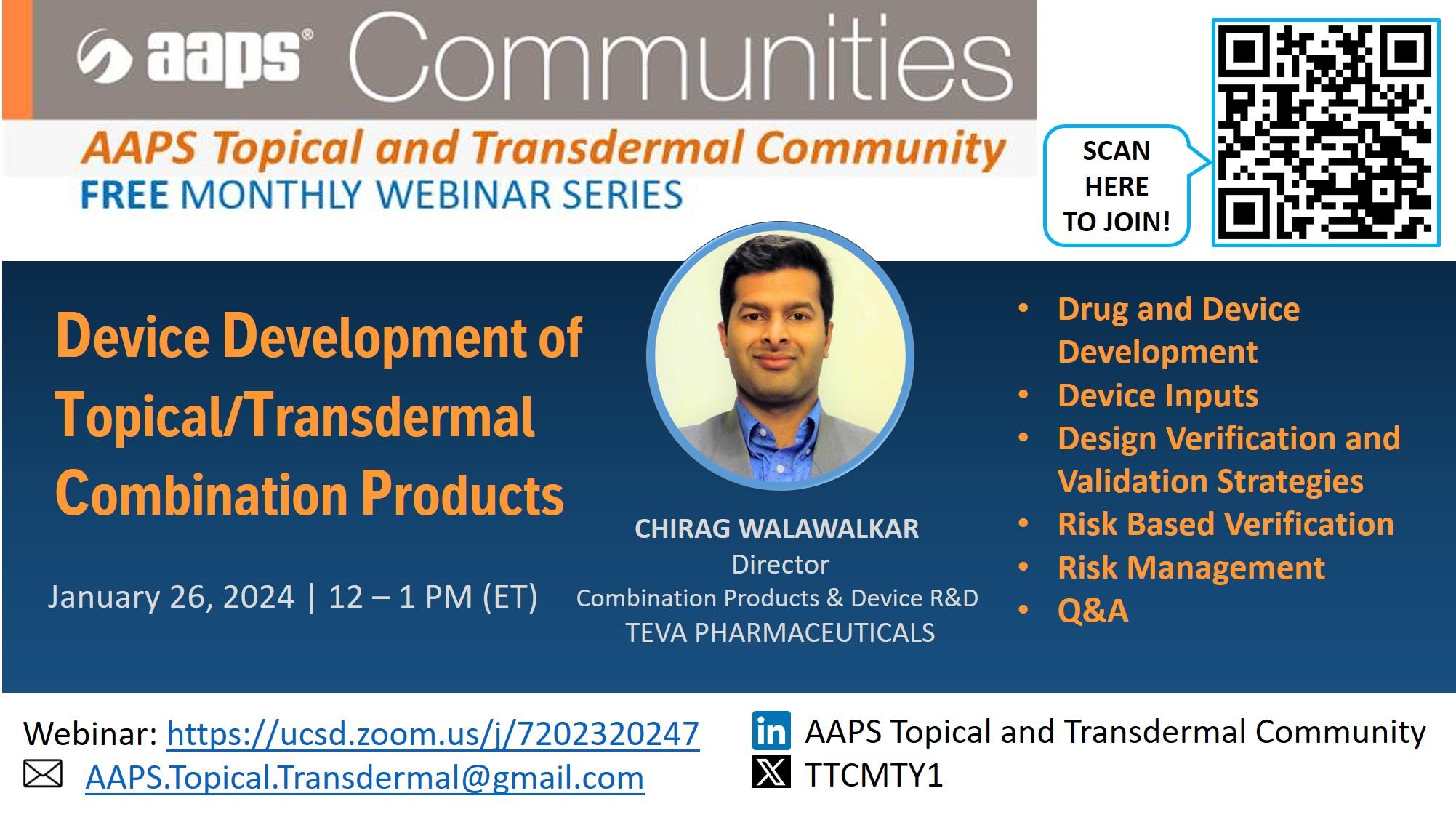 We are thrilled to invite you to an upcoming webinar hosted by the American Association of Pharmaceutical Scientists (AAPS), focusing on "Device Development of Topical/Transdermal Combination Products."